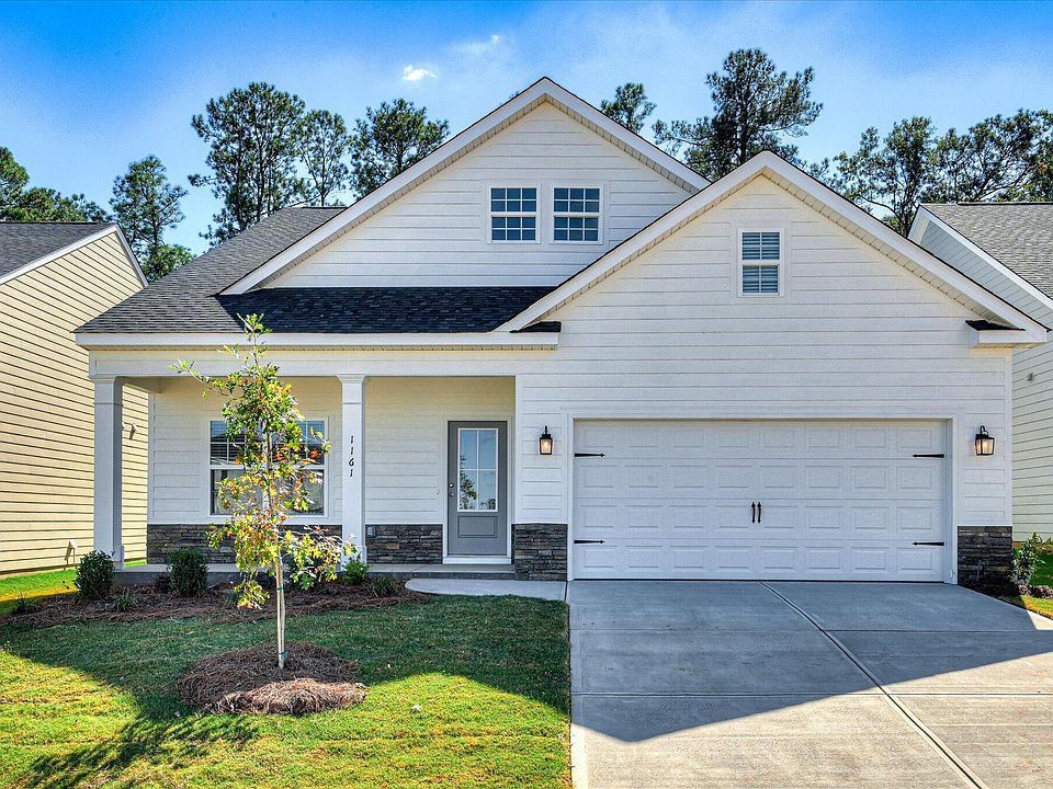 The Bondi Plan by Designer Homes of Georgia! This beautifully designed, 3-bedroom, 2-bathroom single-story home is situated in the highly sought-after Sanctuary subdivision in Aiken, SC. Set on a spacious lot that backs up to peaceful green space, this home combines charm, comfort, and thoughtful design. Step inside to an inviting open floor plan filled with natural light, custom trim work, and elegant details throughout. The living area features a cozy fireplace and flows seamlessly into a luxurious kitchen equipped with granite countertops, a stylish tile backsplash, and stainless steel appliances. Enjoy your private outdoor oasis with a fully landscaped backyard and a covered patio. Perfect for relaxing or entertaining. All bedrooms, including the spacious owner's suite, are conveniently located on the main level. The owner's suite features a stunning en-suite with dual vanities and a tiled walk-in shower. The Sanctuary neighborhood offers a lifestyle of ease and community, with sidewalks, streetlights, a large community garden, and a scenic walking trail. Located just minutes from Downtown Aiken, Bruce's Field, Hitchcock Woods, premier equestrian venues, shopping, and fine dining. Please note: Photos shown are of a previously built Bondi Plan. Home features, finishes, colors, and fixtures may vary. Buyer and buyer's agent to verify square footage and school zones.
