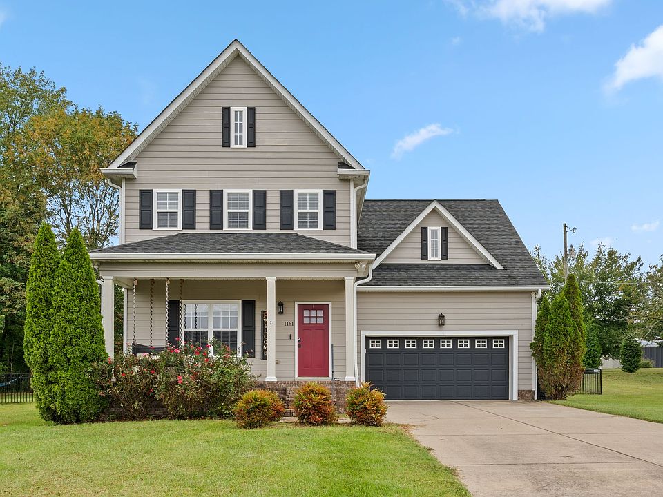This home has all the charm and updates you’re looking for! Inside you’ll find gorgeous hardwood floors, granite counters, a cozy stone fireplace, custom cabinets, custom pantry, and even a wet bar—perfect for entertaining. The large primary suite features a walk-in tile shower. There’s a huge bonus room with two closets for extra space. Don’t miss the rocking chair front porch, and peaceful fenced backyard with a great patio for relaxing. Tons of storage with floored attic space, plus upgrades like a smart thermostat and electronic door keypad. Some new hardwood, carpet, tile, sink, and vanity. All in a quiet, friendly neighborhood with no HOA. Super convenient access to I-65—just about 30 minutes to Nashville or the airport! 1% lender credit with use of preferred lender. Schedule a showing today before this gem is gone!
