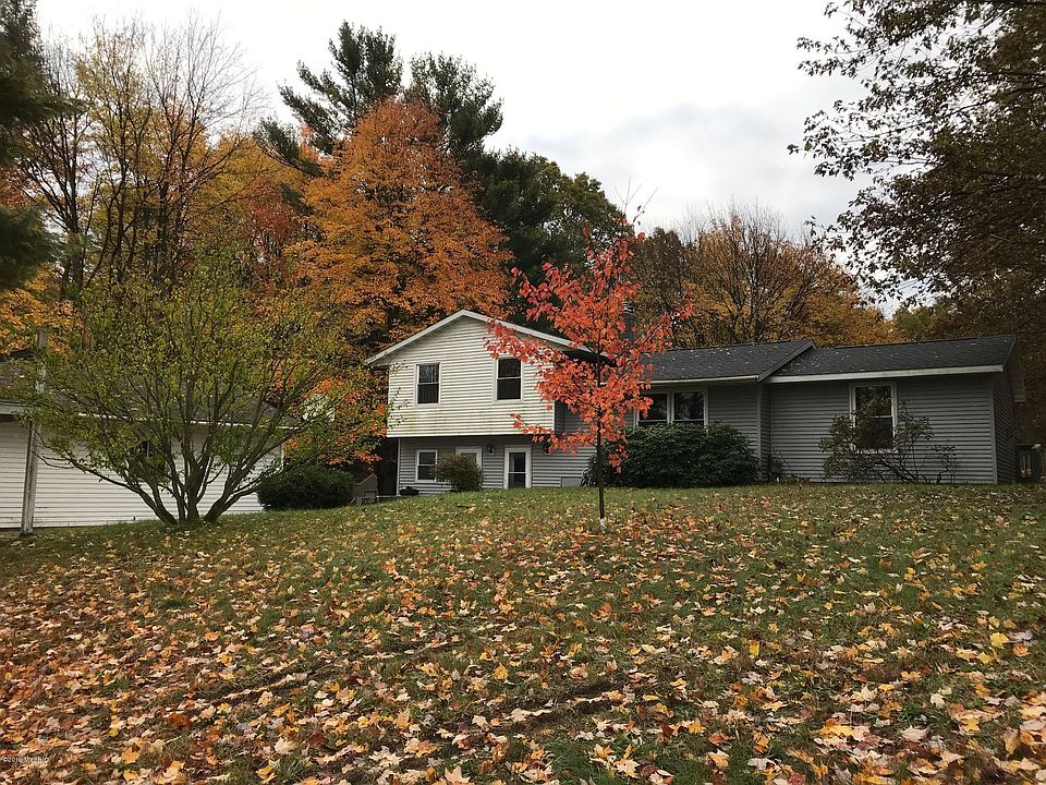 Don't miss your change on this one: Reeths-Puffer schools on 7.4 acres, this three bedroom, two full bath tri-level with walkout basement needs TLC. Features include an additional extended family living quarters and central air. There is also a detached two stall garage and two sheds for all your storage needs. Upgrades include all new triple pane windows in the main house, kitchen remodel, newer roof, and newer well, pump and motor. Simple fixes such as new paint, floor coverings, and a little trim work would refresh your new home. Great way to have equity. FHA repair loan eligible.