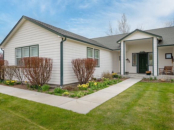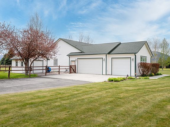 This single level home on 3.14 acres is in pristine condition and has been meticulously maintained. Situated in the heart of the Bitterroot Valley and nestled alongside the year-round Coal Pit Creek, this elegant residence seamlessly combines comfort, style, and functionality. There are high-end finishes throughout, including rich knotty alder cabinetry, granite countertops, 12x12 slate flooring, and laminate wood floors. The spacious, split bedroom floor plan includes a generous master suite with an oversized shower, relaxing soaking tub, and a peaceful retreat-like ambiance. The bright and open kitchen flows into the dining and living areas, perfect for entertaining. The patio invites outdoor living at its finest. There is a finished attached triple-car garage plus a 30x40 detached shop featuring a concrete floor, and a huge RV carport with room for all your Montana lifestyle toys. An additional office/library area provides space for working from home or quiet reading. Enjoy year-round comfort with central air conditioning and you'll appreciate the low-maintenance lifestyle with underground sprinklers, irrigation rights, and extensive professional landscaping. This home truly has it all—space, serenity, and sophistication—all just minutes from Corvallis.