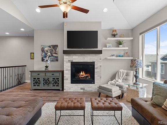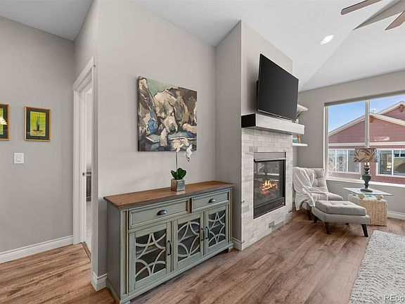 This hidden gem in Lincoln Creek Village is less than five years old and features low-maintenance living and a fantastic central location in Parker. The main level of this west-facing property includes three bedrooms and two baths, an open-concept kitchen, living, and dining space, and a large laundry/mud room with utility sink. The finished, garden-level basement boasts tall ceilings, abundant natural light, a bedroom, bathroom, and large flex space with a built-in wet bar. Other highlights of the home include covered front and back porches, vaulted living room and primary bedroom, hand-troweled walls, soft-close cabinets, new carpet (with thick padding), and granite countertops in the kitchen, bathrooms and laundry room. Take advantage of a lock and leave lifestyle as the metro district maintains front yard landscaping and snow removal. Easy access to E470/I25 and less than five minutes to charming Main Street via Pine Drive.