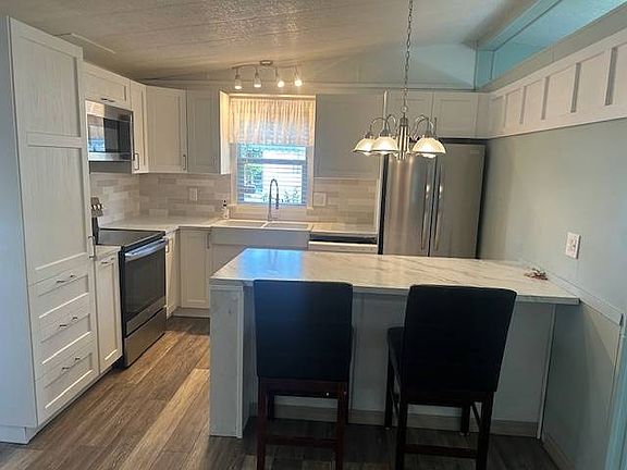 Welcome to your dream retirement in the sought-after Imperial Oaks 55+ community! This beautifully maintained 2-bedroom, 2-bath home offers 864 sq ft of comfortable living space, enhanced by a delightful 10x14 Florida room with screened and vinyl sliding windows - the perfect family room! Step outside to an inviting 11x11 back patio overlooking a serene pond, ideal for relaxing and enjoying the Florida sunshine. Freshly painted with refreshing interior and exterior colors, this home exudes a welcoming ambiance. Enjoy house-type windows that let in ample natural light and newly remodeled bathrooms featuring stylish vanities, high-boy toilets, and stunning tiled showers. The en-suite bath boasts a convenient linen closet for added storage. The gorgeous, newly decorated kitchen is a chef's delight! Custom white cabinetry, pull-out drawers, a fantastic deluxe counter bar with ample storage, and a built-in cookbook shelving add to the charm. Equipped with newer stainless steel appliances and a farmhouse sink, this kitchen is as functional as it is beautiful. The 11x11 dinette is open and welcoming, perfect for gatherings. The primary bedroom (11x13) easily accommodates king-sized furniture and features a walk-in closet and a lovely en-suite bathroom. The guest bedroom (9x9) offers a wall-length closet for plenty of storage. A shed with a laundry room adds convenience. Stay comfortable year-round with cold central air. Lot rent is $975.00 and includes access to a heated pool and other fantastic community amenities. This home is move-in ready and waiting for you to create lasting memories! Don't miss out on this incredible opportunity! Welcome to Imperial Oaks Mobile Home Community, a 55+ gated oasis in New Port Richey, Florida, where the good life awaits! Imagine yourself enjoying the Florida sunshine by the heated pool, perfecting your game on the pickleball court, or connecting with neighbors in the vibrant clubhouse. Situated in a beautiful country setting with a shimmering lake and lush landscaping, Imperial Oaks offers tranquility and convenience. The monthly lot rent of $975.00 includes lawn service and trash pick-up for hassle-free living. Pet-friendly (one pet under 35 lbs) and conveniently located near fine restaurants, shopping, Hudson Beach, and Bayonet Point Hospital, Imperial Oaks is more than just a community; it's a lifestyle. Explore the possibilities today! While all information is considered reliable, we encourage prospective buyers to conduct their own personal inspections for a comprehensive understanding of the property's condition and measurements. Please note that American Mobile Home Sales of Tampa Bay Inc. cannot guarantee the accuracy of this information. As a buyer, you will be responsible for all closing costs, sales tax, and title transfer fees associated with the purchase. The buyer assumes full responsibility for obtaining all current rates for lot rent, fees, and any pass-on costs, as well as to familiarize yourself with the lease agreement and community regulations. For these details, please reach out to the community or park manager directly. American Mobile Home Sales of Tampa Bay Inc. is not responsible for quoting said fees or policies.