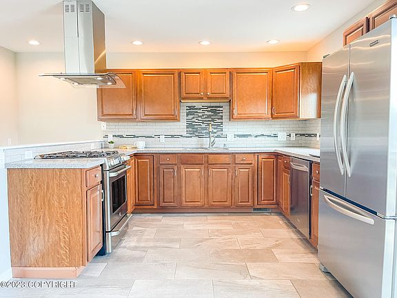 This is the duplex you have been waiting for! Major updates, newer water heaters, siding, triple pane windows in entire building, newer trex decks on each side, newer garage doors, unit B has had an amazing remodel with large kitchen, stainless appliances, tile flooring, large bottom floor primary suite with large walk in closet, garages are oversized one car with room, for workshop or ttoys!Side A had a new kitchen in 2021 and has newer bathroom vanities and updates. Both sides have fenced area for dogs and kids in addition to common area backyard with large shed and garden boxes-its the biggest lot on the cul-de-sac. Walking distance to school, parks, and stores in excellent south Anchorage location.
