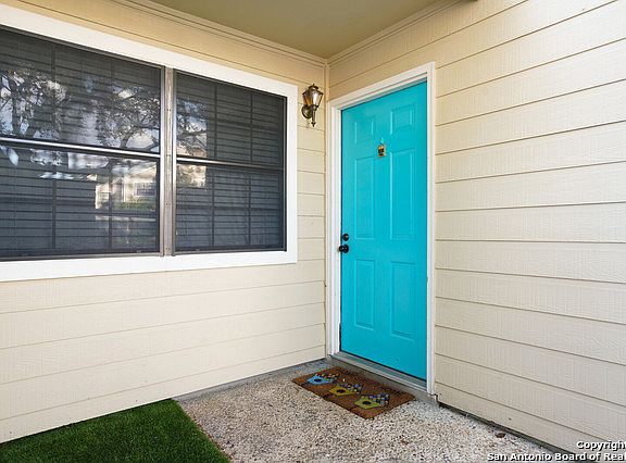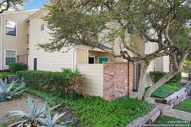 This corner Townhouse style condo is ready for you to call home! The kitchen has honed granite counters with custom finished edge, white subway tile backsplash and stainless steel appliances. The living area has ample room with fireplace in the living room and an open concept to the dining room and kitchen with a half bath and laundry, there is new wood look tile floors with upgraded fixtures. Upstairs you have 2 bedrooms and a full bath. Solar screens installed as well as a new water heater and refrigerator. The condo comes with all appliances including a stackable washer and dryer. The community has walking trails, clubhouse, pool, and easy access to Medical Center & UTSA. Schedule your showing today!