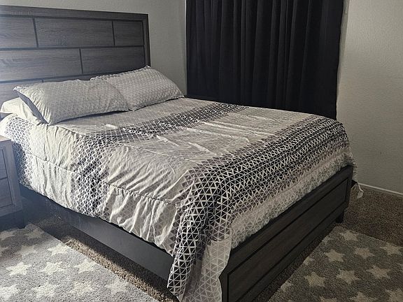 Good size room (120 sq.ft) comes semi furnished. Full size bed with mattress and 2 night stand. Also, has black out curtains. Shared bathroom with only 1 person. Parking on property or street parking is available. Single occupancy only.
