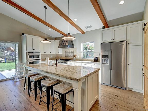 Welcome to this custom-built, single-family ranch-style home located within the exclusive gated community of Rancho Heights. Set on 11.74 acres of scenic mountain land, this property offers privacy, space, and convenience—just 10 minutes from Temecula Wine Country, Old Town Temecula, and local shopping and dining. The home features an open floor plan with a welcoming entry, spacious living room, and seamless flow into the kitchen and dining areas. The chef-style kitchen boasts ample cabinetry and a walk-in pantry, ideal for entertaining and everyday living. A private dining area is tucked just around the corner and opens directly to the side yard for indoor-outdoor enjoyment. The primary suite opens to a concrete covered patio and a fenced turf backyard, offering a private retreat for the whole family. Two additional bedrooms share a Jack-and-Jill bathroom. An optional fourth bedroom currently exists (not permitted) and offers future potential. The home includes 2 full bathrooms and two half baths (one in garage). Additional highlights include a laundry room with built-in office space, a fully plumbed 3-car garage with half bath and attic storage drop down ladder, paid and permitted solar, RV parking and an RV sewer clean-out drain in the driveway. Detached shed with electric next to the garage previous use office space. The large driveway provides ample space for RV, trailer, and additional parking. This unique property combines rural tranquility with proximity to Temecula’s best amenities—perfect for those seeking space, flexibility, and lifestyle. The home includes 2 full bathrooms and two half baths (one in garage). Additional highlights include a laundry room with built-in office space, a fully plumbed 3-car garage with half bath and attic storage, paid and permitted solar, and an RV sewer clean-out drain in the driveway. The large driveway provides ample space for RV, trailer, and additional parking. This unique property combines rural tranquility with proximity to Temecula’s best amenities perfect for those seeking space, flexibility, and lifestyle. Backyard is fully turf and fenced in, side yard boasts a large gazebo for relaxing.