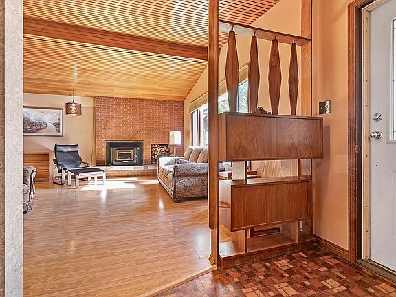 Pie-shaped lotRare back alley accessCedar ceiling finishesSouth-facing front exposureMain-floor laundrySpacious primary suiteWood-burning fireplace