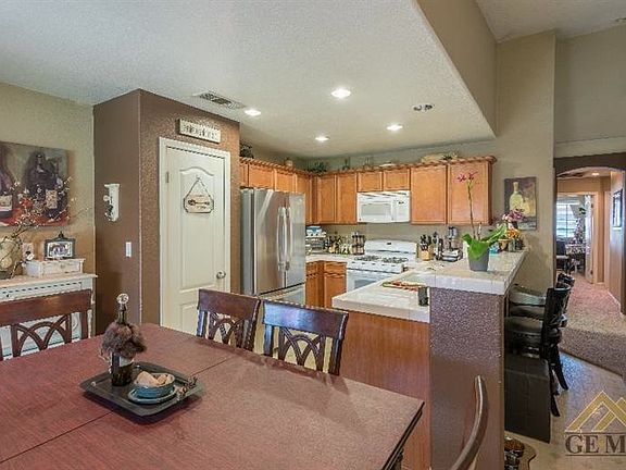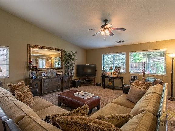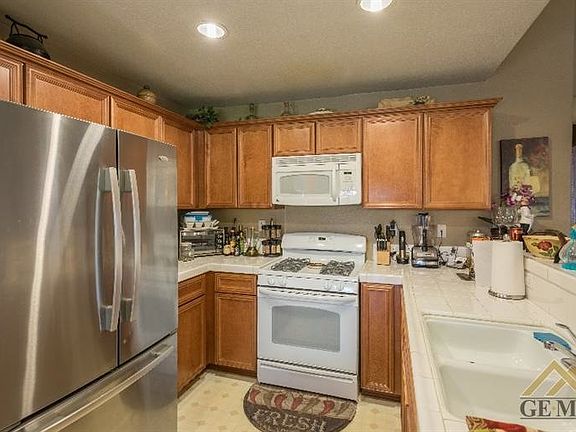 Located in one of the most popular northwest neighborhoods in Bakersfield is this spacious four-bedroom, two bathroom mediterranean-styled residence. Constructed in 2005, this beautiful home boasts of generous designer features: window blinds throughout, sparkling white counter tile and chome plumbing fixtures, recessed lighting, vaulted ceilings, ceiling fans with light kits, gas cooktop, microhood and dishwasher ina classic white finish as well as a double-compartment sink at the kitchen, neutral plush carpet as well as an interior laundry room and ensuite at the master bedroom. You'll also find a large covered patio, fully landscaped front and rear yards with designer touches-ideal for entertaining. This home is located on a secluded cul-de-sac and includes a generous 2 car garage with automatic garage door opener, finished floor and built-in cabinets.