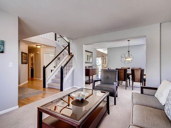 Welcoming frame & brick two-story in the desirable Hidden River community perfectly situated on a large .2 acre beautifully landscaped site with amazing Front Range views from the large covered back deck. This charmer backs to open space and the Hidden River trail system which leads to the park, tennis & sport courts, pool, & elementary school just a short walk away! Very quiet & private fenced grounds are canopied by mature trees. Well-appointed recently updated kitchen w/ gorgeous granite slab counters, s/s appliances and. Master suite, updated en suite bath and three additional bedrooms upstairs. The spacious finished lower level features a wet bar, family rm, a 5th bedroom, bathroom, & storage area, and walks out to the back yard & lower covered patio. A beautiful home in a great community!