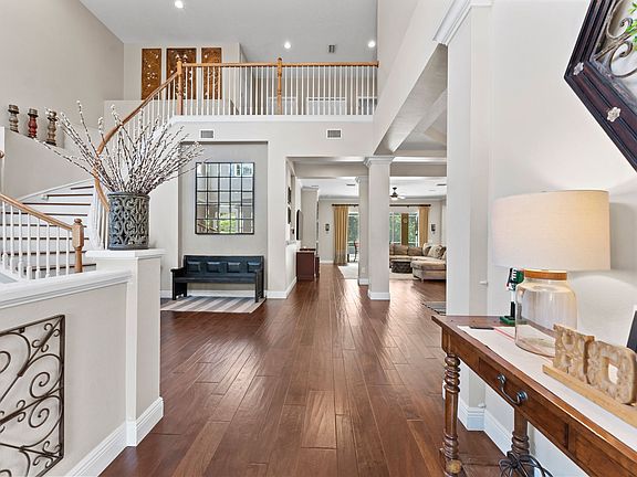 Nestled in the prestigious Mandolin Estates community this 4210 SqFt 5 BR + Office (6 BR) /3.5 Bath/ 3 Car Garage luxury estate complete with heated pool, movie room, and expansive grounds with a private orchard of orange, grapefruit, avocado, and banana trees, tree fort, and large gazebo is a rare opportunity to call home. The home has too many luxury features to list; however, some of the main features include high ceilings throughout with a 30' grand foyer, artisan hardwood floors throughout the entire downstairs, spiral staircase, and billiards room, custom-crafted granite countertops throughout, high-end stainless-steel appliances with induction heating cooktop, a sealed and enhanced travertine paver pool area with heated pool, expanded deck, outdoor grill area, and covered and screened lanai. All pool maintenance is included. The ground floor master has an attached gym area with an ensuite bathroom featuring built-in TV, walk-in shower, large walk-in closet, jetted and separately heated soaking tub, and high-end fixtures complete with quartz and custom tile throughout. Front-loader washer and dryer included in dedicated laundry room. Almost every electrical switch is controlled with a "Zigbee" smart switch compatible with Alexa for complete home automation. This is the largest home on a double conservation lot in the highly sought-after gated Mandolin Estates community, which is in the heart of the Westchase area and walking distance to A-rated schools, all the fantastic shops and restaurants in the Westchase area, and a short drive to the Veterans Expressway. Truly a unique and rare opportunity. Trash & pool maintenance included in rent. We require first month rent (pro-rated), & $6500 security deposit. As well as a minimum of 625 credit beacon score, 2.75 X rent amount gross monthly income, and no evictions. Application fee is $85.