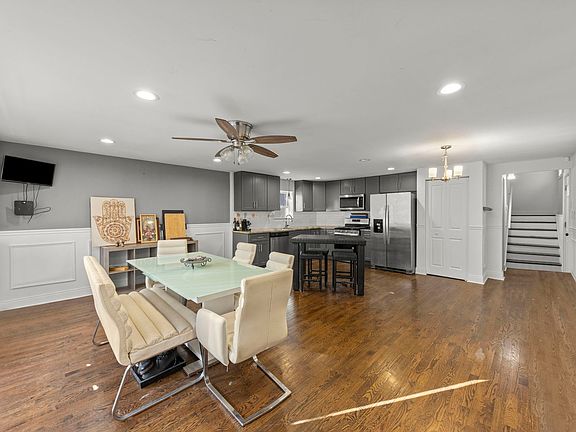 Modern gray shaker cabinetryHuge fenced backyardAttached garageSpacious family roomGleaming hardwood floorsCustom hardwood staircaseFinished lower level