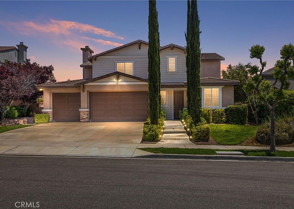 Welcome to 11617 Bluegrass Road; a beautiful upscale home that begins at the very attractive front yard. Located in the much desired community of Chapman Heights, this property sits at the very top end of Bluegrass Road. As you enter the front door one will notice the lovely laminate wood floors, high ceilings and an exquisite chandelier. To the right is spacious room currently used as an office but provides several options to include craft/hobby room, playroom, gym or guest quarters with a downstairs full bathroom. As you make your way into the formal living and dining areas you are welcomed by an elegant space, large windows offering views and custom drapery. The formal dining room flows into gorgeous kitchen featuring granite counter tops, walk in pantry, island with overhead custom lighting fixture, high bar seating and breakfast nook area. The kitchen nicely opens up to the family room area which includes the first of two fireplaces in the home, custom shutters and a sliding glass door leading the fabulous backyard. This property does not have any homes behind it; leaving the amazing views of the local hills and mountains unobstructed. The backyard offers privacy and tranquility - solid patio area, classy hardscape design, outdoor fireplace, custom concrete work, a dog run, mature landscaping and brand new sod as well as 12 volt outdoor lighting – perfect for night time setting and entertaining. Upstairs, you will find the master suite featuring a fireplace and balcony with plenty of room for outdoor seating and enjoying the gorgeous views. The master bathroom consists of a soaking tub, separate walk in shower, double sinks and vanity area, walk in closet with custom closet system. Also upstairs are two large rooms, an additional bathroom with dual sinks and a good sized laundry room with large closet/storage area. This home also offers a 3 car garage, newer water heater and dishwasher. All this is conveniently located to nearby shopping, restaurants, plenty of outdoor recreation to include hiking, golf course and everything a Yucaipa lifestyle has to offer; within walking distance are 2 parks and an elementary school. Come view this tasteful stylish home!