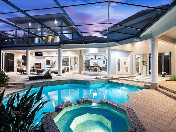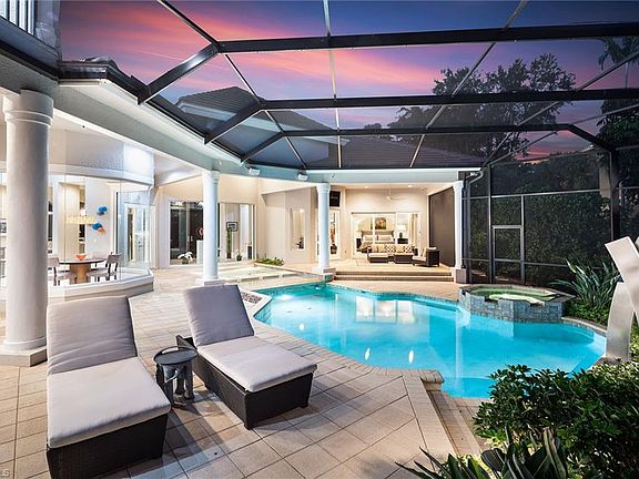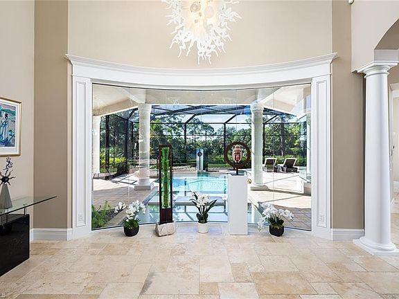 Sophisticated, stylish and sunny retreat describes this beautifully renovated residence on a very private cul-de-sac lot with serene southern exposure lakefront setting. This sprawling residence offering over 8,500 SqFt in total area is an entertainers delight with spectacular foyer entrance with 17 ft ceilings, huge windows, climate-controlled 700 bottle wine cooler with beautiful glass door and great room with big views and impact pocket sliding doors leading to the 2,700 SqFt lanai with ample covered and uncovered entertaining area. The sleek cook’s kitchen offers Thermador appliances, 6-burner gas stove, double oven, center island, bar area and huge walk-in pantry. Many improvements include four stunning renovated bathrooms, exquisite light fixtures, new roof and screened enclosure in 2018, two new hot water heaters in 2022, marble floors in living area and guest suite, wood floors in owner’s suite and study, generator, gas fireplace, built-in safe, Sonos sound system and speakers throughout living area, Ring security and summer kitchen with Artisan grill and sink. The large owner’s suite offers beautiful views, two walk-in closets, large bath with private garden setting with inside and outside showers. Huge private guest suite upstairs with large screened & open balcony overlooking the lake. Long driveway leads to the fabulous oversize 927 sqft garage with built in cabinets, third bay for golf cart and car lift for the auto collector. IMMEDIATE GOLF MEMBERSHIP AVAILABLE WITH PURCHASE, negotiable furniture package and pristine condition make this home move in ready. Collier’s Reserve's natural beauty of 450 acres was recognized as the world’s first Audubon Signature Sanctuary community and offers world-class club amenities, championship golf, active tennis, pickleball, and bocce, newer fitness center, excellent food with friendly staff, and overall superb location in Naples, less than 2 miles to Vanderbilt Beach.