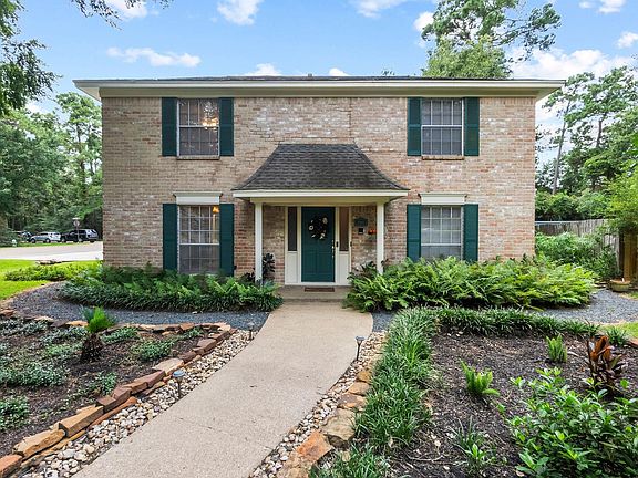 Back on Market - Home has never been inspected. Buyers did not conduct any inspections just changed mind. 1/2 acre corner lot has all bedrooms UP. The owners had a first floor Rec Room addition built just off the kitchen with wood laminate floors and built-in shelves for storage. This is the highly desirable Village of Grogan's Mill conveniently located 10 minutes from The Woodlands Mall, Grand Parkway, I-45, just 25 minutes from IAH, and 15 minutes from Market Street. This charming brick 2-story was built in 1975 and has had one owner take impeccable care of this home. Lots of natural light, an amazingly green and lush corner lot, and just over 2500 square feet all in the Woodlands schools all situated on this 20,000 foot lot!!
