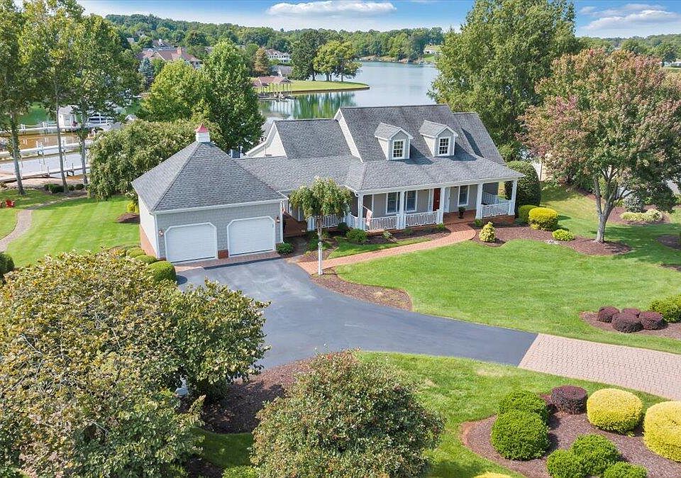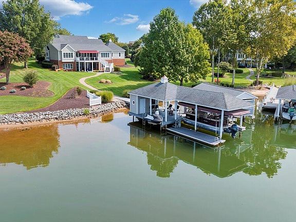 Fall in love with the charming Boardwalk neighborhood at Smith Mountain Lake. This fabulous community offers a variety of amenities, including jogging and walking trails, a swimming pool, a picnic pavilion, tennis and basketball courts, a boardwalk, and an observation tower. Situated at the end of the neighborhood peninsula, this home provides easy access to upscale shopping and amenities, as well as the main channel of Smith Mountain Lake--perfect for getting around by car or boat. Designed for one-level, easy living, this home features an entertainment-focused floor plan. Enjoy the spacious deck upstairs and the patio downstairs, as the indoor spaces seamlessly flow into the outdoors. The dock is fully equipped with a boathouse, hoist, and automatic boat cover. There is a ski doo lift. The docks foster a sense of community, and this particular dock boasts a great view of the expansive, open water cove. The maintenance-free exterior includes attractive Hardiplank Staggered Shake, Trex decking, and brick and paver stone walkways and porches. Covered porches and patios create inviting spaces for outdoor gatherings.