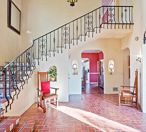 Located in the heart of Rossmoyne, on a beautiful street with a canopy of trees, sits a beautiful 3,000 SF Spanish home of grand proportions. Step into the entry with soaring ceilings and Saltillo tiles. Notice the incredible hand-stenciled doors and the Spanish tiles detailing the fireplace and curved staircase. Downstairs is a bedroom ideal for a den or family room with French doors to the private backyard reminiscent of a courtyard in Seville, Spain. Upstairs are three oversized bedrooms, two with private terraces and walk-in closets the size of small offices. The bathrooms are adorned with spectacular original tiles believed to be from the famed Medmenham Tile Company by way of the Dressler Kiln. The home is an homage to Spanish character and is a must-have for anyone who appreciates the character that makes a home a piece of artwork. Downstairs is a finished basement ideal for an office, gym, or home theater. The detached 2-car garage with loft space completes this rare offering.