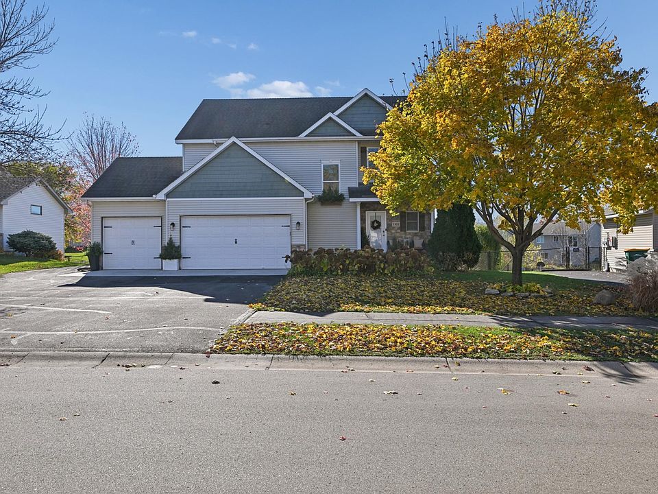 Gorgeous views on this beautiful lot with tranquil pond views and ability to add a dock! Great renovated two story floorplan with upgraded and open main level floorplan! Upgraded with new flooring on the main level and lower levels of the home. Living room opens to the dining space and kitchen with new center island with built in table top and high-end Quartz countertops. White cabinetry, stainless steel appliances, and floating shelf round out this high-end kitchen unlike anything else you have seen in this price range. Upper level features large Primary Bedroom with ensuite Primary Bathroom including separate tub and shower, as well as two additional bedrooms and upper level laundry room! Sought-after walkout lower level leads out to the backyard with water views and above ground pool, which could be removed if buyer prefers. Large lower level family room plus space for game areas, workout area, or easily add doors on the additional room and turn into an additional lower level bedroom. Roughed-in for plumbing to add a potential wet bar if desired. Close proximity to Waconia High School!