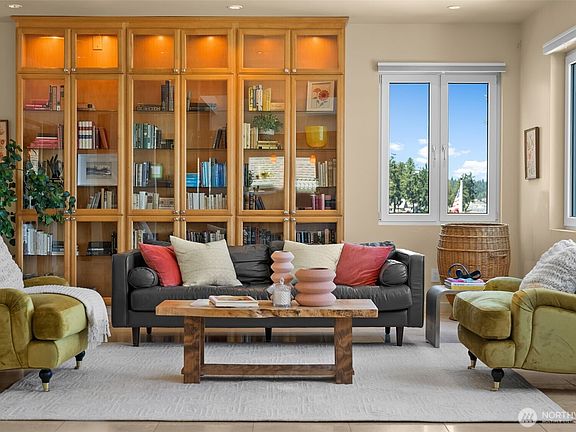 Where loft style meets the waterfront—this standout Fox Island retreat blends industrial-chic with Mediterranean warmth. Located in the Peninsula School District & only 15 min to Gig Harbor amenities you benefit from peace and quiet + 180 degree views of both sunrise and sunsets. 82 feet of waterfront, moorage, a shared dock & a buoy. Inside, heated travertine floors, soaring ceilings, and a light-filled open layout set the tone. With 3 beds, 3.5 baths, an office, den, & bonus room with 3/4 bath, there’s room to live, work, hosts guests & recharge. A 2,000 sq ft TimberTech deck, 14-ft swim spa, European casement windows, & metal roof bring modern, low-maintenance luxury. End-of-cul-de-sac with room to play and plenty of parking.