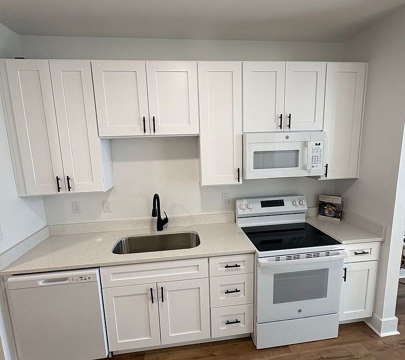 Fully equipped kitchen with refrigerator, microwave, stove/oven and dishwasher.