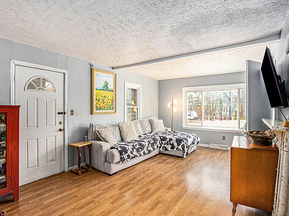 Discover the perfect blend of comfort and country living in this inviting 3-bedroom, 1-bath ranch-style home nestled on 3.8 wooded acres. Enjoy the privacy and tranquility of the natural surroundings while still being close to modern conveniences. The home features a high-efficiency furnace and a brand-new air conditioner installed in 2025, along with upgraded electrical service for added peace of mind. Inside, you'll find beautiful laminate and hardwood flooring throughout the main level, offering both style and durability. The spacious full unfinished basement provides endless possibilities for storage, a workshop, or future living space. Step out onto the back deck to take in the serene views of your fenced-in backyard—perfect for pets, play, or entertaining. This property combines modern updates with the charm of a private country retreat—ready for you to call home! Buyer and buyers agent to verify all information.