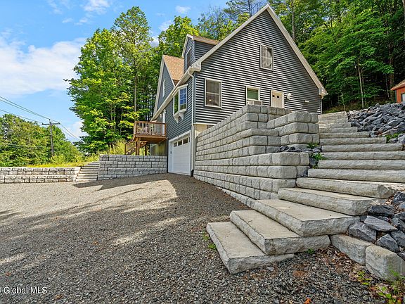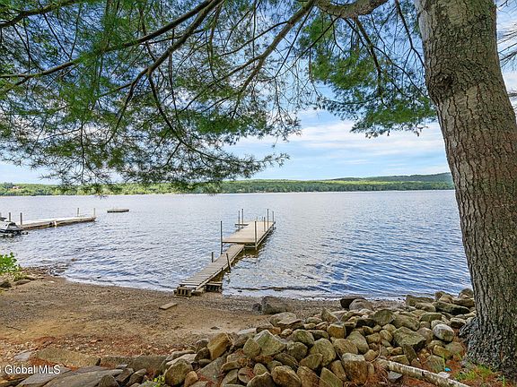 Great Sacandaga Lake Location Almost Brand New Light & Airy Cape Cod Home that comes furnished! Across from GSL w/100' sandy beach, dock & area to relax by the water. Nice lake, mountain & sunset views. Home is built over 2 car garage & full basement, 0.29 acre lot & 2 sheds. Front deck to enjoy relaxing at the house! Expansive living room with bay window open to modern hickory cabinetry kitchen with large quartz countered island & foyer. Primary bedroom with bay window facing the lake & large ceramic bath with walk in shower & closet. Guest bedroom, 2nd ceramic bath & laundry room. Luxury vinyl flooring whole first floor! 2nd floor with 1493 sq ft already wired- waiting to be finished to your liking! Generac automatic transfer switch Navien furnace 10' bsmnt ceiling. Edinburg low taxes