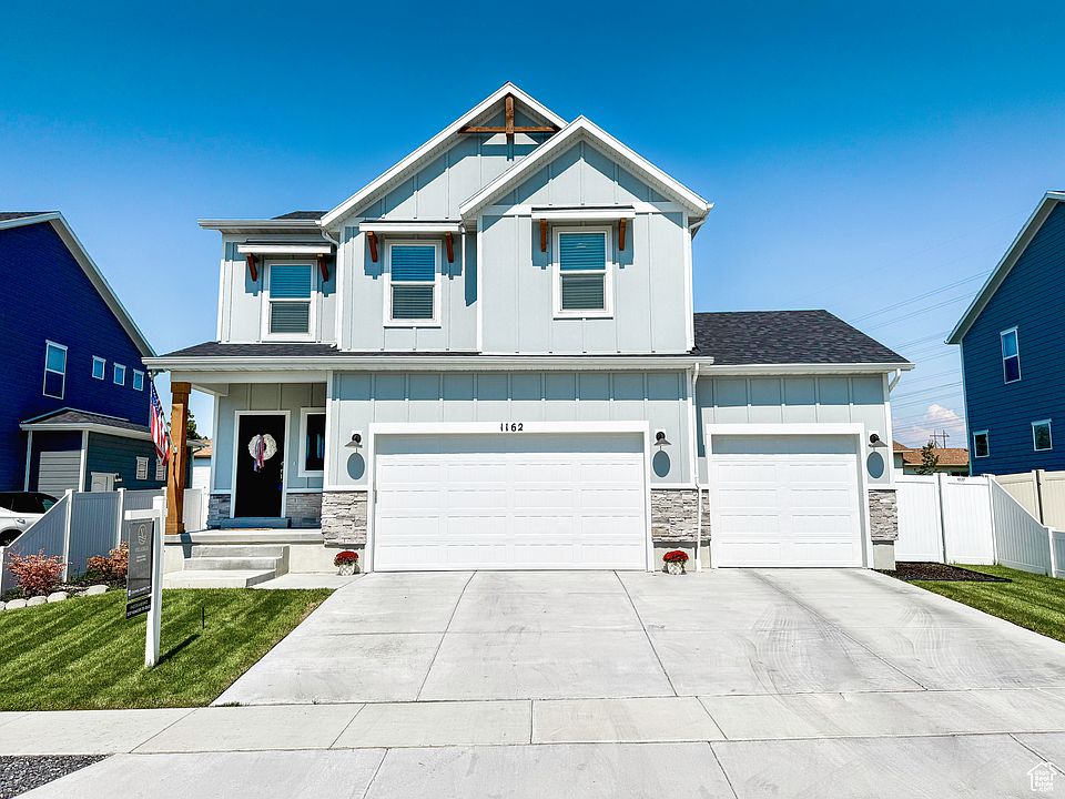Venture inside this beautifully designed two-story home where natural light fills every corner. With 3 bedrooms, a versatile loft, and laundry all upstairs, there's room for everyone to live, work, and play. The main level features an open-concept great room, a modern kitchen with soft gray cabinets and a central island, and plenty of space for gatherings around the dining table. The unfinished basement offers potential to expand and includes a cold storage room. Outside, enjoy a fully fenced and landscaped yard with garden beds, automatic sprinklers, and a handy shed. The three-car garage includes an extended bay-perfect for storage or a workshop. Located close to shopping, dining, entertainment, parks, and Hill Air Force Base. Square footage figures are provided as a courtesy estimate only and were obtained from the builder. Buyer is advised to obtain an independent measurement.