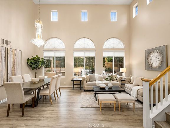 Discover unparalleled privacy and serene park access in Sedona's exclusive gated community. Nestled on an interior parcel with charming curb appeal and just steps from the neighborhood pool, this community is surrounded by tree-lined vistas and inspired by nature. Characterized by soaring ceilings, walls of windows and an abundance of natural light the open floor plan is ideal for gatherings, blending timeless luxury with relaxing comfort. Handsome wide-plank flooring & elegant lighting fixtures adorn the inviting living room while expansive windows frame serene garden views. A crackling fireplace and garden vistas brings cozy warmth to the inviting family room, an ideal place to relax & unwind, and the open concept floor plan flows gracefully into the bright white kitchen with expansive countertops, chef’s island and large walk-in pantry. The versatile den could be transformed into a downstairs bedroom, while a spacious backyard offers a pergola-covered patio with multiple areas for entertaining and a peaceful garden retreat for relaxation & social gatherings. Upstairs, relax in the lavish primary suite w/vaulted ceilings, large spa-like bath, generous walk-in closet & picturesque garden views. Bright secondary bedrooms are upgraded w/elegant window shutters & custom lighting fixtures. A flexible loft offers space for a home office or bonus room, and the 3-car garage is a rare find in this price range. Indulge in the resort-style amenities or enjoy nearby parks, Peters Canyon Trail & Tustin Ranch Golf Club. Desirable for its walking distance to schools, this is a community where hiking, biking, golf & outdoor activities are a way of life, yet you’re just minutes from the convenience of the Tustin Marketplace & world class shopping, dining & entertainment. Only one like this…so schedule your showing before it’s gone!