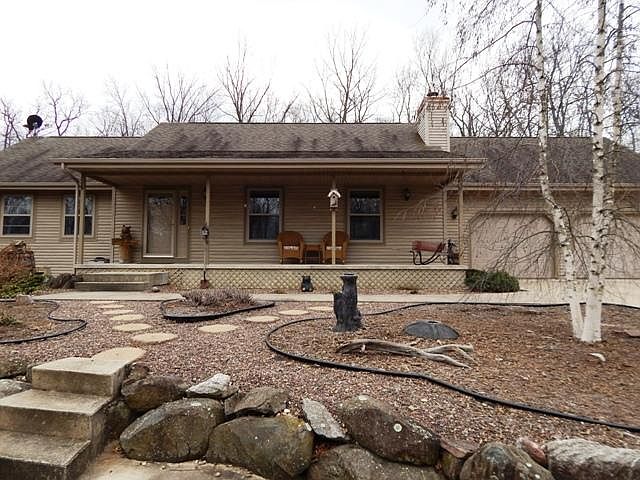 Privacy abounds at this 4+ acre home. This property is meticulously maintained inside and out. You'll love the cathedral ceiling, wood-burner with fieldstone hearth, quartz kitchen countertops, 6-panel oak doors and open concept. Exposed basement offers additional living space. Everything is in excellent condition. Extra 2-car detached garage. Seller has deer stands out and says it's great hunting. Come relax awhile on the front porch and listen to nature. This is your next home! Home Warranty Included.