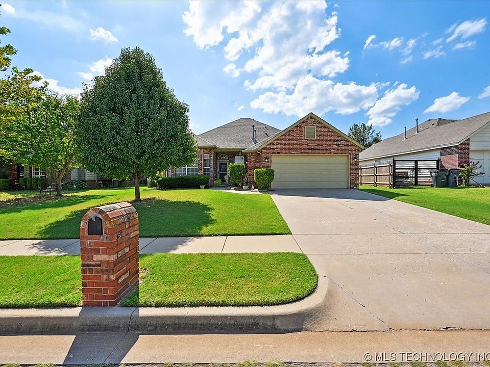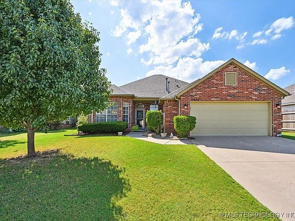 Desirable Park at Southwood subdivision in Bixby School District! Versatile floor plan with 4 bedrooms and a formal dining or office OR 3 bedrooms, an office and formal dining. (The 4th bedroom has a door to the hall and also french doors; it is currently being used as an office). Several of your BIG TICKET ITEMS have been updated in the last 5-7 years so the new homeowners can focus on the interior trim/wall paint and other cosmetic updates; home has been priced accordingly for these items. New bigger ticket items include: NEW ROOF IN 2018 (w/full guttering), NEW HVAC IN 2018, EXTERIOR PAINT IN 2018. Carpet has been replaced during seller's ownership as well as laminate flooring upgraded to tile in the kitchen and baths. The living room is open to both the kitchen and breakfast nook and has a gas log fireplace and ceiling fan. Kitchen is spacious with stainless steel appliances (dishwasher-2019, microwave-2015 and stove/oven-2015). Lots of cabinet space plus a pantry. Primary bedroom is large enough for king sized furniture and has a ceiling fan and wall of windows overlooking the back yard. Private primary bath has 2 walk in closets and double sinks. Secondary bedrooms are currently being used as an office and craft room but both have room for full or queen sized furniture. The BACK PATIO (CONCRETE & ROOFLINE) EXTENDED IN 2018 for extra patio/entertaining space. Bixby schools! Close to north Bixby shopping, gas stations, restaurants and a quick 3-4 miles to the turnpike.