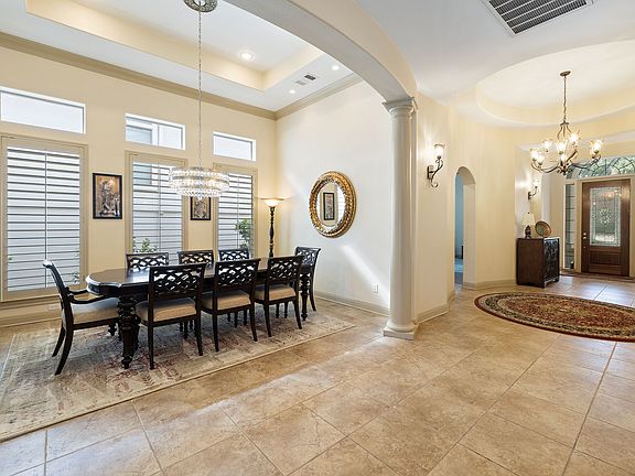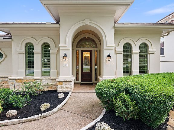Welcome to your dream home located in a picturesque setting on the 11th tee of the UT golf course. This stunning house offers everything you could possibly desire, from an abundance of living space to a thriving community with endless activities. With four bedrooms, three bathrooms, a separate office and three-car garage, this residence provides an abundance of room for your family's needs. NEW ROOF installed in 2023; other recent upgrades include a new concrete driveway, plantation shutters, fresh paint throughout, designer light fixtures, new tile and wall coverings in the bathrooms. This house is an architectural gem located in one of Austin's top rated school districts. The Steiner Ranch community offers an active lifestyle with miles of biking and hiking trails, perfect for those seeking outdoor adventures. As you approach the property, you'll notice the professional landscaping and attention to detail, constructed with 100% masonry, combining stone and stucco for a timeless and elegant exterior. The dramatic oval entry hall sets the stage for a grand entrance, making a lasting impression on guests. Inside, the 10 and 12-foot ceilings throughout along with arched windows and crown molding, create an airy and spacious atmosphere. The seller's favorite part of this home is the large patio facing the golf course, featuring a full-coverage, remote controlled retractable awning and mounted television. This centrally located home offers convenient proximity to upscale shopping in the Domain, the lively nightlife of downtown Austin, and a short ride to the Austin-Bergstrom International Airport.