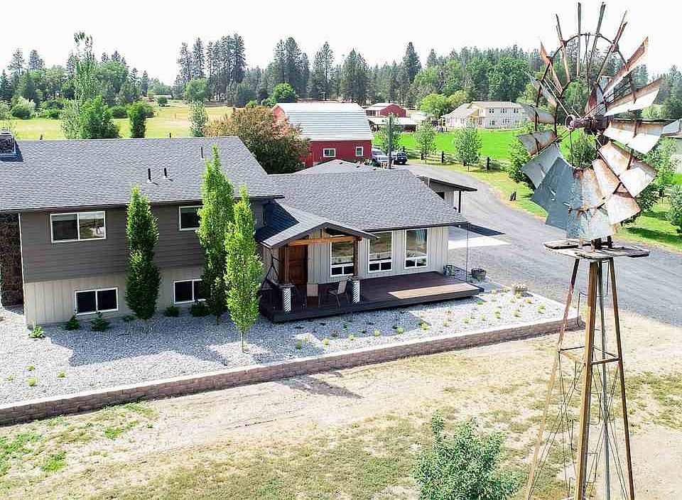 Absolutely stunning home on 4.81 acres in the Mead School District! Chef's dream kitchen with stainless appliances, quartz countertops, huge island, and knotty hickory cabinets. Great room concept on the main floor with circle sawn red fir flooring. 3 bdrms and 2 bths on the upper floor. Master with walk in closet, and mstr bth with shower and soaker tub. Total remodel from top to bottom. Landscaped backyard with fountain and firepit. Huge barn with workshop. This home is truly amazing