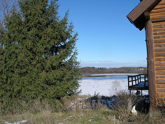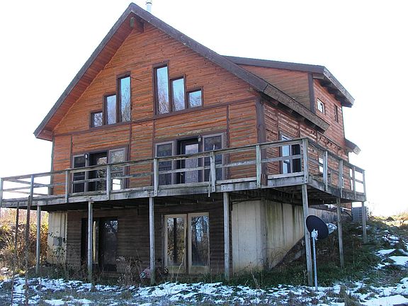 Beautiful Views of Profile Lake from this 8.3 acre hilltop parcel. This Log Cabin home is being sold in AS IS condition has structural damage from Tornado/straight line wind storm several years ago and is currently condemned by the township. The home has a walk out basement and there is a 30 x 40 pole barn on the property. Contact listing agent for structural engineers reports. All construction plans to fix the structure or build new will need to be approved by Fabius Township building inspector. Being sold in AS IS condition.