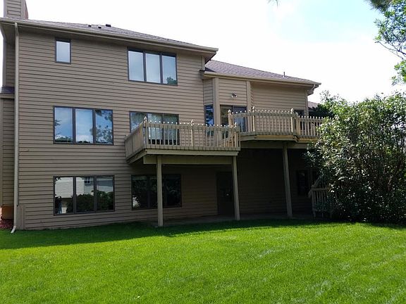 1 owner custom built modified 2 story in a quiet cul de sac. Easy walking distance to Elm Creek Park Reserve. Open floor plan with12'H ceilings, large room sizes throughout. 6 panel Oak doors, Hickory hardwood floors, New Andersen Windows & window treatments. Fully finished walkout basement w/large family room, den & BR. Entertaining size deck looks over a private backyard. Updated mechanicals with 96% efficient Carrier furnace. 3 stall garage with large concrete driveway.