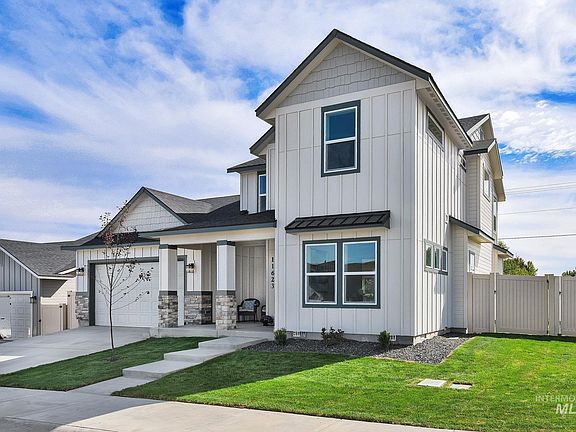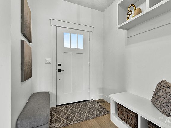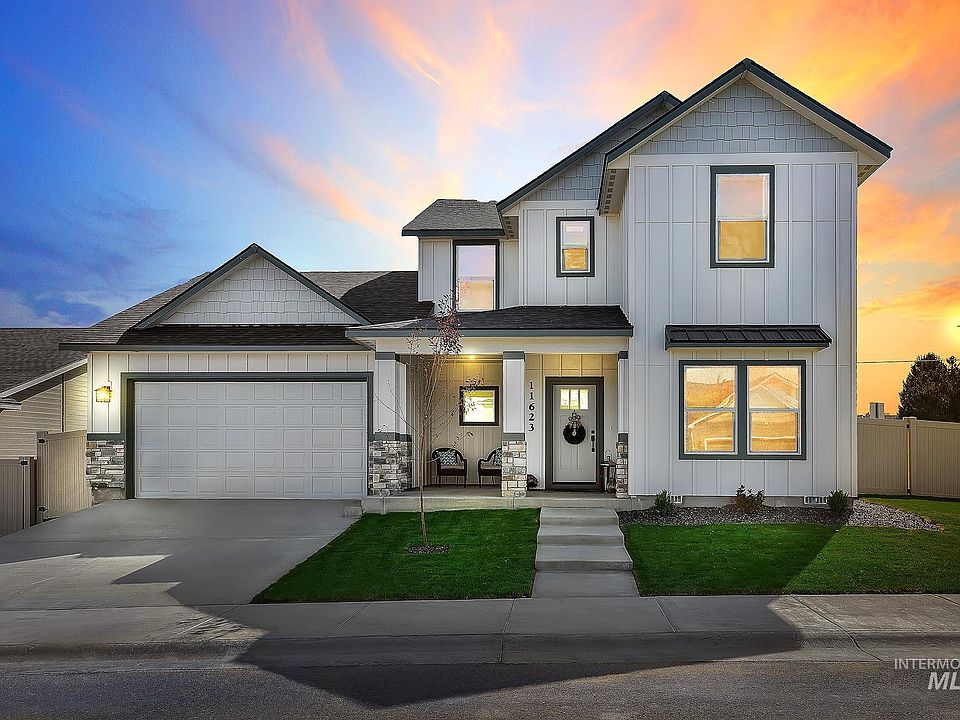 Experience refined living in this thoughtfully custom-designed 4 bed, 2.5 bath, 1903 sq ft home. A versatile bedroom/office sits downstairs with an adjacent ½ bath. Tailored entry built-ins add both function and elegance. Gourmet kitchen features ceiling-height soft-close cabinetry w/lighted glass uppers, quartz countertops, tile backsplash, farmhouse sink, stainless appliances, pull-out trash cabinet, and a full butler’s pantry. Gold and black accents elevate the design, while a 7' barn door brings charm to the dining area. The great room centers on a custom fireplace with tile surround and wood mantel. Hard-surface flooring flows throughout, plush carpet in bedrooms, hardwood stairs, and an organized upstairs laundry with built-ins. The gorgeous primary suite offers dual vanities, a walk-in tile shower, and a large walk-in closet. Dual-zoned HVAC ensures year-round comfort. Outside, fully fenced yard w/sprinklers, full fencing, garage 220V & plumbing for a water softener. Minutes from Red Hawk Golf Course!