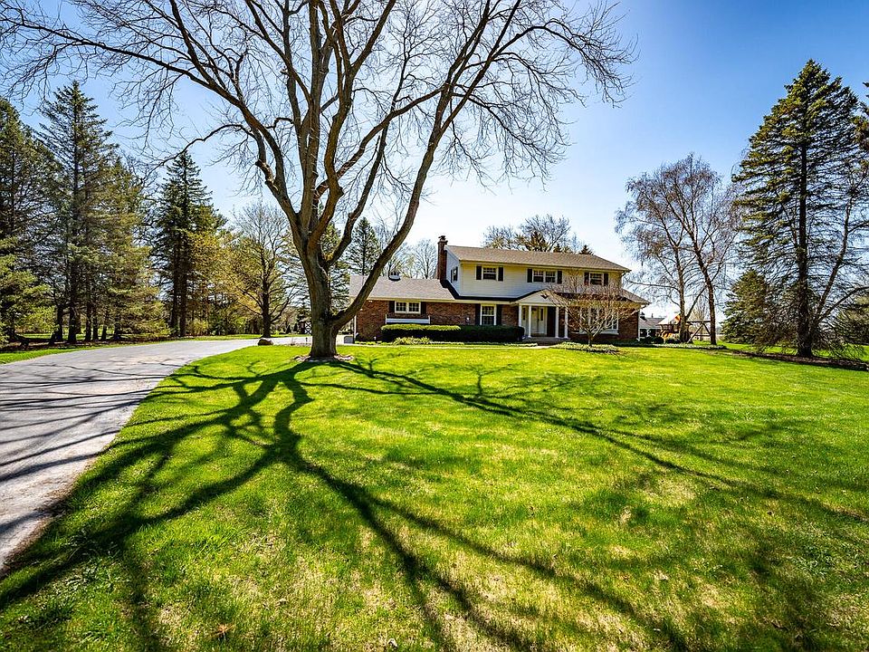 A long time ago roads were named after their destinations. Can you imagine what life would have been like in 1968 on this 2.5 acre country estate. Set back off the road with giant trees, outbuildings, koi pond & long views of the southern horizon you really have to walk the lawn to enjoy the enormity of this rare find. Centered behind the trees is your midcentury colonial & it does not disappoint! Formal front door tiled foyer leads to your home office/den & formal dining room. The garage leads to your main floor laundry/mudroom & extremely comfortable family room with GFP. You can sit at the kitchen table for hours looking out over your patio or set up the buffet in the dining room. Upstairs find 4 very spacious bedrooms & tricked out master suite closet. The list goes on- it's amazing!