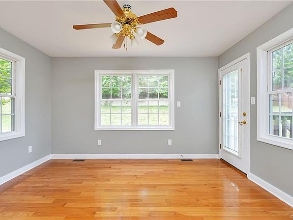 Spacious One level living located conveniently in the middle of Chester! This is your opportunity to experience living in a luxurious ranch home freshly painted throughout featuring low maintenance exterior and an amazing back yard! An open floor plan with Hardwood floors extends to the entire living space along with gorgeous tile in the 2 full bathrooms. The living room boasts vaulted ceilings and a fireplace situated in the corner allowing for great entertaining. Continue through the living area through French doors and you will find a bright sunroom full of natural light perfect for your green plants or relaxing with a cup of coffee while viewing your spacious back yard! The kitchen features great sight lines to the family room and includes an abundance of cabinets. The master bedroom has a large walk in closet and a spa like bathroom. Large shower area, separate jetted tub, and dual vanities complete this en suite bath.