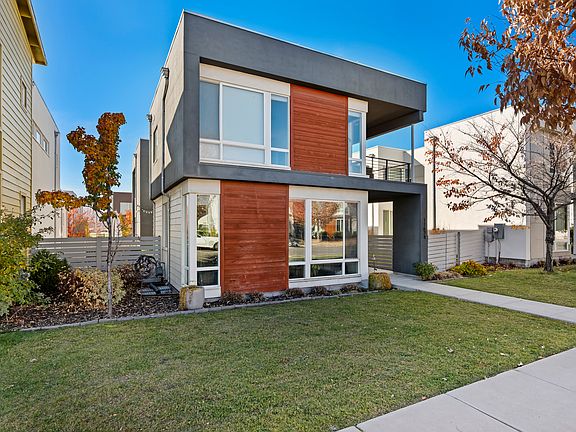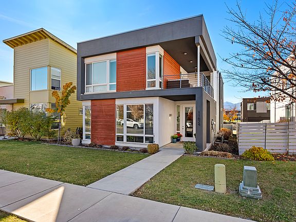 This beautiful home-featured in the 2014 Parade of Homes-offers a perfect blend of modern design, comfortable living, and energy efficiency. The gourmet kitchen showcases sleek Italian cabinetry, quartz countertops, a gas stove, and new Bespoke Samsung AI-powered glass-front appliances. Designed with sustainability in mind, the home features a tankless water heater, water softener, air filtration system, 220V EV outlet in the garage, and solar panels for reduced utility costs. Enjoy indoor-outdoor living at its finest with a spacious patio off the kitchen-ideal for entertaining-and a covered deck off the primary bedroom for private relaxation. Lovingly maintained and move-in ready, this home offers access to all that Daybreak has to offer, including lake activities, a fitness center, scenic parks and trails, dining, shopping, the new Bee's stadium, and convenient TRAX access. Square footage figures are provided as a courtesy estimate only and were obtained from tax assessor data. Buyer is advised to obtain an independent measurement.