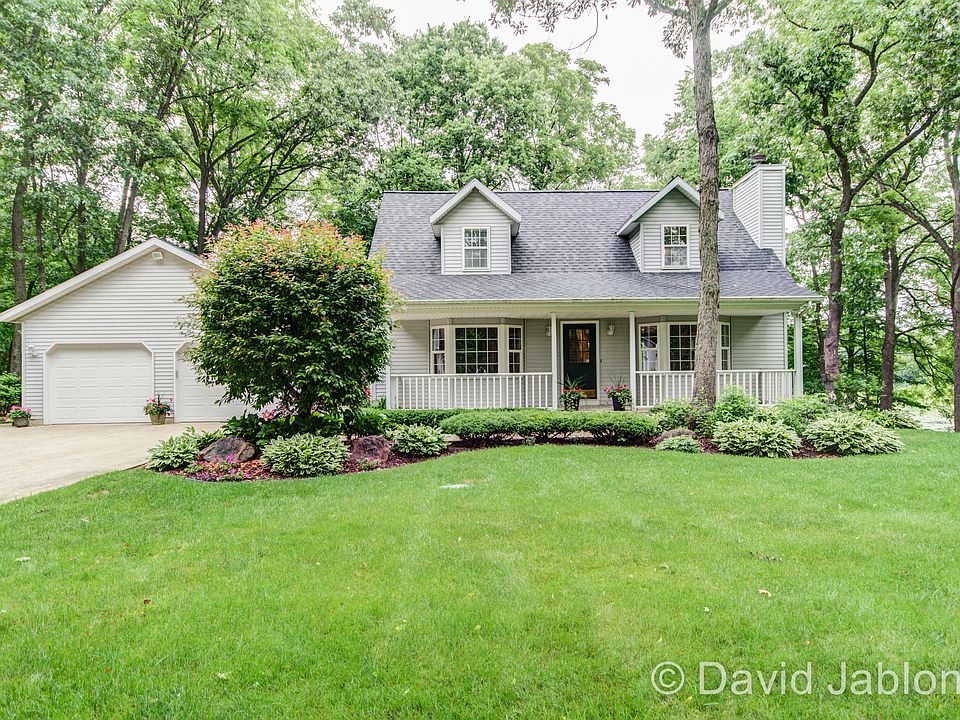 2 story Cape Cod nestled on 5 acres overlooking a beautiful 20 acre wetland. Main floor features open concept with updated kitchen which includes granite counter top island with snack bar.Spacious Main floor master bedroom and bath with walk-in closet. Main floor laundry, additional 1/2 bath, wood burning fireplace and custom built entertainment center, Second floor features two bedrooms, a full bathroom, and open stairway. Finished basement with large family room, craft room, bedroom, full bath, storage room and walk-out to a beautifully covered deck. Main floor living space was completely remodeled in 2010. Two stall attached garage is insulated and dry-walled with separate natural gas furnace with custom lockers.