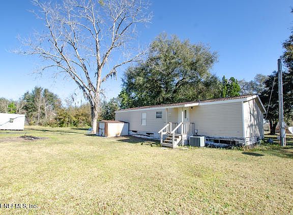 Cozy home on over an acre of land looking for new owners! Home needs some TLC to make it your own but has a nice open layout with plenty of space and a huge yard! Home is located close to Callahan but still on the outskirts of Jax to access all of the conveniences of River City Marketplace & the interstate interchanges. Features include a large family room; kitchen with a breakfast bar & eat-in area; inside laundry, oversized master bedroom with walk-in closet; master bath has a separate stall shower and vanity sinks; split bedroom pattern; plus a storage shed for storage for lawn equip. Home sold AS-IS with no repairs.