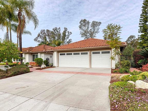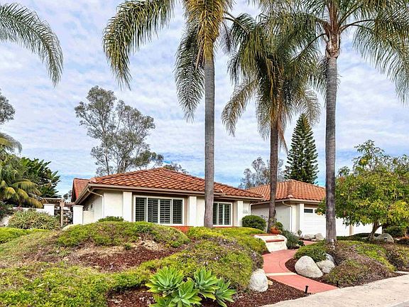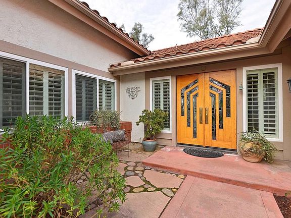 SCRIPPS CROWN POINTE, an upscale gated community of 213 homes scattered among 201 acres of natural beauty. Open the gate of this one level east facing home and be greeted by a floral courtyard. Enter through the double doors and be awed by the open floor plan with elevated ceilings and numerous sliding doors to stone and concrete patios, pool, spa, built in Bar-B-Que and refrigerator. The interior just painted in a soft white palette. New carpet compliments the freshly steam cleaned travertine tiles in earth toned colors. White plantation shutters are throughout this home. Adjoining the updated kitchen is a family room that opens to a south facing covered patio for year round dining options. The spacious primary bedroom has two large closets, dual sinks, tub and stall shower. The three additional bedrooms are bright and sunny, separate from the primary bedroom wing. One of the bedrooms has been repurposed as an office. Laundry room with sink and cabinets. Who wouldn’t love the steam cleaned three car garage. Newer air conditioner. Pickle ball, tennis or racket ball your sport? It’s all here including a beautifully appointed community room for special occasions. A serene and quiet location. Welcome to your new home.