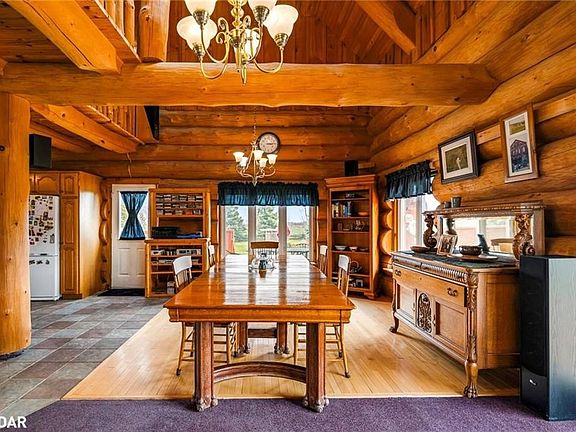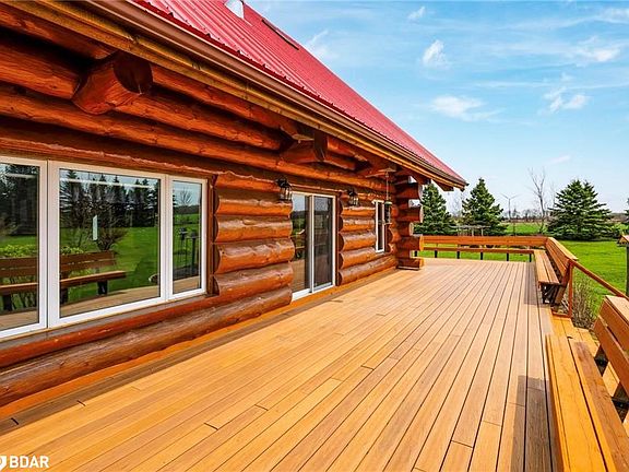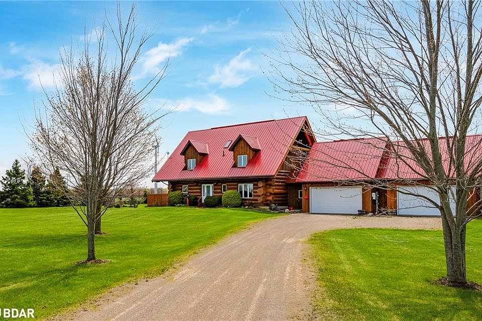 One of Kind Exceptional Property!! $$$...Upgrades ! MUST BE SEEN ! Hand-Scribed Log Home on 2.58 Acres! Just minutes from Shelburne, this stunning 4-bedroom, 2-bathroom custom log home offers the perfect blend of rustic charm and modern luxury. Nestled on a private 2.58-acre lot, it promises sweeping views, complete privacy, and a tranquil lifestyle for those seeking peace and self-sufficiency. Inside, the warmth of the home is immediately apparent. Soaring vaulted ceilings and an open-concept layout create a bright, airy atmosphere, while a loft overlooking the living room enhances the sense of openness. Large windows flood the space with natural light and showcase the intricate craftsmanship of the hand-scribed logs that make this home truly unique. Built for comfort and efficiency, this home features natural gas heating, a cozy wood stove, a two-oven gas range, and a geothermal water furnace for eco-friendly living. A solar energy system in the garage helps reduce utility costs and minimize your carbon footprint, while a generator and dual sump pumps provide added peace of mind. Step outside to your own private sanctuary. Three levels of composite decking and a fenced backyard provide panoramic views of lush gardens and a sprawling lawn filled with mature perennials. Established fruit trees including apple and pears, rhubarb,, along with raised garden beds, offer the perfect space to grow your own food and embrace a sustainable lifestyle. The beautifully landscaped grounds also features a six-person hot tub for relaxation, a charming gazebo, and a wraparound deck ideal for sunset dinners or starlit evenings with family and friends. More than just a home, this property is a sanctuary where privacy, nature, and beauty come together.! Experience the peaceful, self-sufficient lifestyle you've always dreamed of!