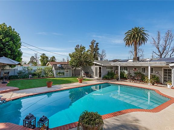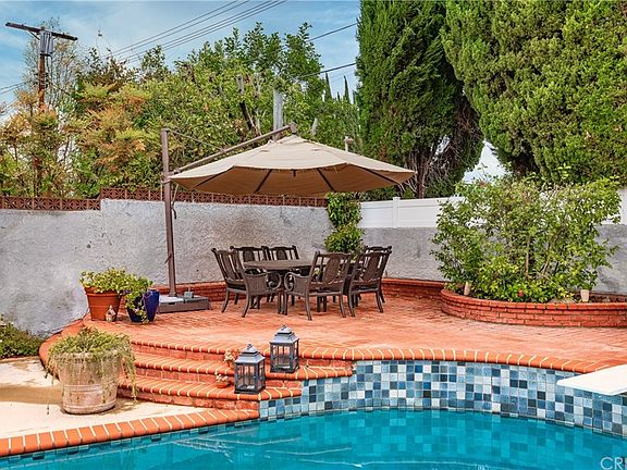 This ABSOLUTELY STUNNING single story Granada Hills home is a very rare find. Located north of Rinaldi and west of Balboa on a quiet tree lined street. The paving stone driveway is complimented by a professionally landscaped yard with brick planters, large grass area, boulder accents and mature trees including beautiful palms. HIGHLIGHTS: Gorgeous remodeled kitchen w/ LED Lighting, Green House Window, Viking Appliance, Self Closing Cabinetry, Granite Counter and Roll Out Drawers - Dining Room w/ Stained Glass Window - Living Room w/ LED Lighting, Large Skylight & Custom Fireplace Mantle - Master Suite w/ Chair Rail, Ceiling Fan, Walk-In Closet & Private Remodeled Bathroom - Bedroom 1 w/ LED Lighting & Skylight - Bedroom 2 w/ Leaded Glass Window & Blackout Shade - Bedroom 3 w/ Chair Rail, Leaded Glass Window, Closet Organizer & Ceiling Fan - Den w/ Cathedral Ceiling, Wainscotting & Ceiling Fan - Guest Bathroom w/ Custom Vanity, On-Demand Hot Water & Skylight - Plantation Shutters - Hardwood Floors - Crown Molding - 6 Panel Solid Core Doors - Hard Wired for Security System - Garage w/ Builtin Cabinetry - Large Pantry. The sizable entertainers rear yard is complimented by a large turf area for a drought and mud free play area; extensive brick work creating the bull nose brick stairs lead to the upper sitting area and brick plants, the large sparkling pool is also trimmed with bull nose brick; stack stone built in BBQ, low voltage lighting and paid off solar.
