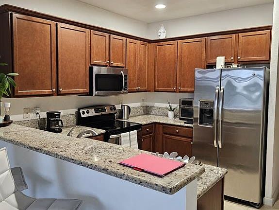 Master upstairsPatio with lake viewElectric appliancesOpen living diningModern kitchenAccordion shutters