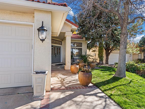 Live the Tanoan lifestyle in this refined 4-bed, 3-bath, 3-Car Garage home offering over 3,200 sq ft of style and comfort. Nestled in Albuquerque's premier gated golf community, this residence features soaring ceilings, wood and stone floors, and a sunlit open layout. The remodeled kitchen boasts new countertops, Viking 6-burner range, island, and breakfast nook. Upstairs, the spacious primary suite includes a fireplace, private balcony, and spa bath. A full bedroom and bath downstairs create flexibility for guests or multigenerational living. Fresh interior paint and a private, landscaped yard complete this exceptional find.