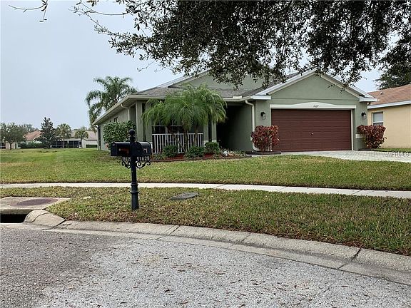 This stunning 3 bedroom, 2 bath home is PRISTINE - A MUST SEE! Located on a cul-de-sac with no backyard neighbors it has one of the largest lots in Rivercrest, offering views of the water and a conservation area - perfect as you relax on the oversized screen lanai. You will love the open floor plan with 18" diagonally laid tile in the main living areas, beautiful newer wood laminate floors in the bedrooms and 5 1/4" baseboards throughout. Both of the bathrooms are remodeled with granite counter tops, tile backsplash, framed mirrors, linen-closets and double sinks. The master bedroom contains his (nice sized) and hers (walk-in) closets. High-end stainless appliances, granite counter tops and tile backsplash make the kitchen a much loved space! You will love the built in desk area with plenty of storage, granite counter tops and tile backsplash. Vaulted ceilings in main living areas and master. Newer (2yr old) paint inside and out! Updated lighting and ceiling fans throughout the house. Laundry room inside the house with cabinets above the washer and dryer. Special features include: keyless entry, Nest thermostat and a Ring doorbell! Outside includes: immaculate landscaping, front-porch & a RARE, extremely long, extended herringbone paver driveway! Great location: Walking distance to schools, clubhouse, pools, fitness trails, tennis, basketball and soccer fields, playgrounds, top restaurants and Publix; easy interstate access, 20 minutes to Tampa, 60 minutes to Disney... THIS HOME HAS IT ALL!