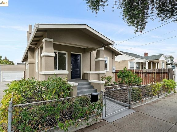 A classic Oakland Craftsman refreshed for modern living. Recent updates include fresh interior and exterior paint, a newly painted fireplace that anchors the living area, and a light fixture that adds character and warmth. The kitchen features brand-new, never-used appliances, a Kraus faucet, and solid shaker doors with updated hardware for a cohesive finish. The bathroom includes a new vanity, framed mirror, and updated fixtures. Outside, a new cedar fence encloses the backyard, where a freshly painted gazebo and mature fruit trees create a serene backyard setting. The wide garage and long driveway provide generous storage and parking options. Additional improvements include a dedicated circuit for EV charging, newer furnace, A/C installation, sewer lateral compliant, an outdoor garden sink, and a quarter bath addition near the gazebo - bringing together comfort, style, and thoughtful function throughout.