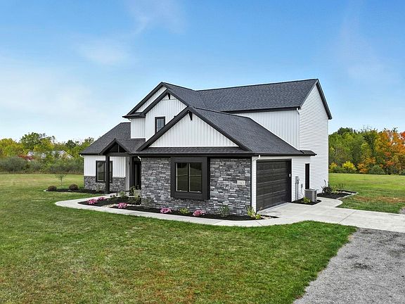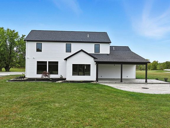 Experience modern country living at its finest! This brand new home by McClurg Builders offers over 2,600 sq ft of thoughtfully designed living space on 4.5 acres. Featuring 4 bedrooms and 2.5 baths, the main level includes a spacious primary suite with dual closets, a double-sink vanity, and a stunning tiled walk-in shower. The gourmet kitchen is a showstopper with custom floor-to-ceiling soft-close cabinetry, quartz countertops, a tile backsplash, walk-in pantry, and all new LG stainless steel appliances. Upstairs, you’ll find three generously sized bedrooms (one with a walk-in closet), a full bath, and a versatile loft/lounge area. Step outside to a huge covered patio with stamped concrete and a built-in firepit — perfect for entertaining or relaxing by the fire. The home also features brand new landscaping with concrete edging and a welcoming front porch. The attached two-car garage is finished with beautiful polyaspartic floors, and the property includes a 40x54x16 pole barn built in 2021 — ideal for storage, a workshop, or hobbies. Every detail has been carefully crafted for comfort, style, and functionality — this home truly has it all!