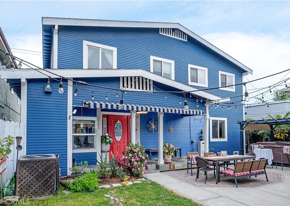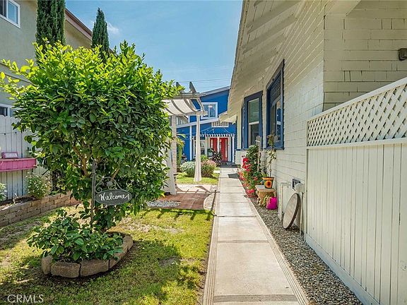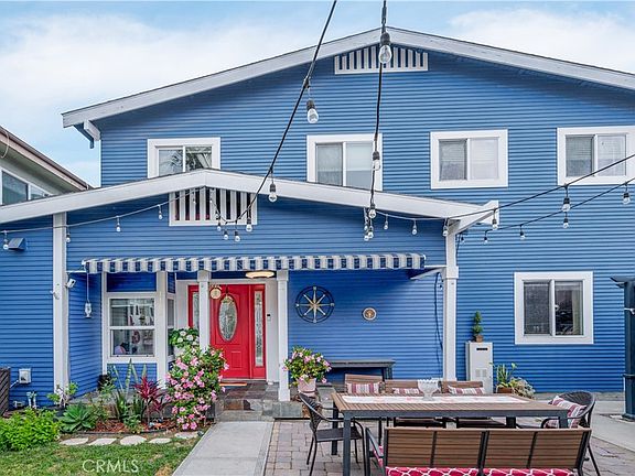 TWO Single-Family Homes ON ONE LOT! You will find the compound a quiet and resort-like feel from the moment you enter. Entering the front of the property you will see the park-like view with grass and gardens, a pergola and fire pit. The front house is grand with 3 bedrooms, 2 1/4 bathrooms. Built in 1923 and features spacious rooms and living space, 10-foot coffered ceilings, and hardwood floors throughout. Two of the bedrooms offer an en-suite bath with the front featuring a large picture window. The 3rd bedroom could be used as flex space and is located in the center of the home. The Living Room is accented with a large statement fireplace hearth and mantle, Attached to the spacious dining room both are open and bright with natural light. The kitchen has been nicely updated. The rear home was updated in 2006 and is currently used as a 3 bedroom, 3 bath but could easily return to a 4 bedroom home. All entertaining is located on the lower level with an open-concept kitchen and an informal dining/social space with great accessibility to the front porch and outdoor dining/entertaining area. There is ample storage and a walk-in pantry with laundry. Along the hallway to the large family room is a coffee station/ bar with designer wallpaper creating a sophisticated party atmosphere, as well as a guest bath. The Family room is large with great light and offers space for a more formal dining area. Ascending the wrap-around staircase you find more natural light and a large central landing point which has great options for flex space. The guest rooms upstairs share a large centrally located bathroom and are inviting and spacious. The primary room is large with a private spa-like bath, spacious sundeck, and a designer walk-in closet with a dressing area. This space can be restored easily to the 4th bedroom. The front home has access to 2 single-car garages. The main home has a private parking pad and behind an electric gate for up to 4 cars. The gorgeous 2-car garage with van-height garage door, epoxy floor, and EV charger allows you direct access to the home. Solar panels on the property are paid for and cut your electric bill to practically zero. The homes have been well cared and the owners have done their best to create a tranquil space to share. Extras include raised vegetable gardens, spa, retractable shade, automated blinds, an outside dining area and so much more. This property is centrally located to all LB offer and is a peaceful retreat.