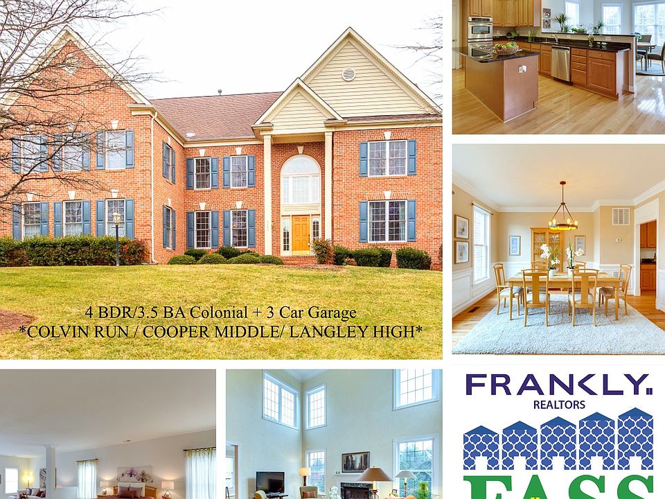 ACCEPTING BACK-UP CONTRACTS! Brick Colonial w/ 3 Car garage. 3,942 Above SF! 2 story Foyer & Family Rm. Gourmet eat-in kit w/ island, SS appliances, & granite. MBR w/ huge walk-in, sep sitting area. MB has sep tub/shower, 2 vanities. New Stone Patio, perfect for entertaining! Private Neighborhood -no thru-streets. Only 10 mins to METRO, Tysons & Reston TC. **COLVIN RUN/ COOPER/ LANGLEY