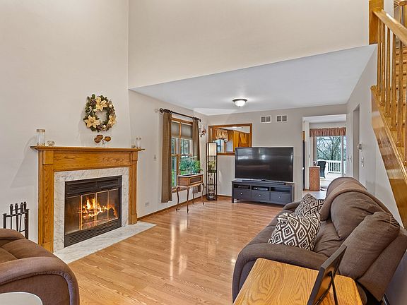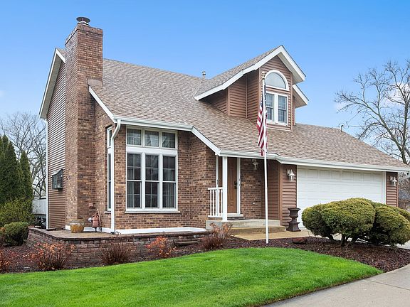 Check out this two story home with 3 bedrooms/2.5 bathrooms and full finished basement on an oversized lot in the heart of Lemont. Enter into the two story living room with gas starter fireplace and wood floors. Large eat in kitchen offers plenty of cabinets, pantry closet, table space, and sliding glass door to the deck. Updated half bathroom includes new vanity and tile. Master bedroom with walk in closet and updated shared full bathroom with tile shower and new counter tops. Two additional bedrooms round out the second level. Full finished basement offers family room and bar area which makes it perfect for entertaining. The basement also has a full bathroom and laundry/ mechanical room. Two car attached garage and storage shed. Enjoy a little shy of 3/4 acre fenced property. Backyard offers huge private 2 tier deck for large gatherings with friends and family. Professionally Landscaped. Close to park, downtown, Metra, and much more. Roof is 6 months old, A/C '17, & HWH '16.